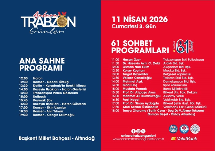 Trabzon Günleri 3. gün programları; sahne etkinlikleri ve VakıfBank 61 Sohbet oturumlarıyla birlikte gün boyu canlı olarak yayınlanacaktır.