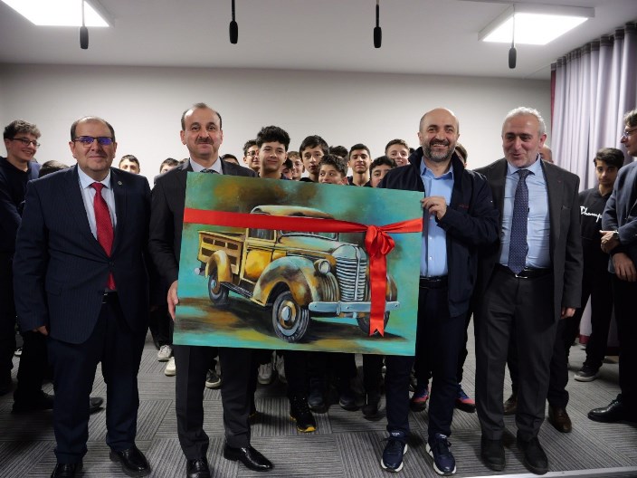 Konuşmaların ardından Ali Haydar Baş Konferans Salonu’nun kurdelesi kesilerek hizmete açıldı. Milli Eğitim Müdürü Hasan Uygun, Devrim Arabası’nın yağlı boya tablosunu bağışçı Ali Haydar Baş’a takdim etti. Açılış töreninin ardından okulda öğrencilerin hem karada hem de havada hareket eden araç tasarımı projeleri incelendi ve öğrencilerin proje çalışmalarına devam etmeleri konusunda görüş belirtildi.