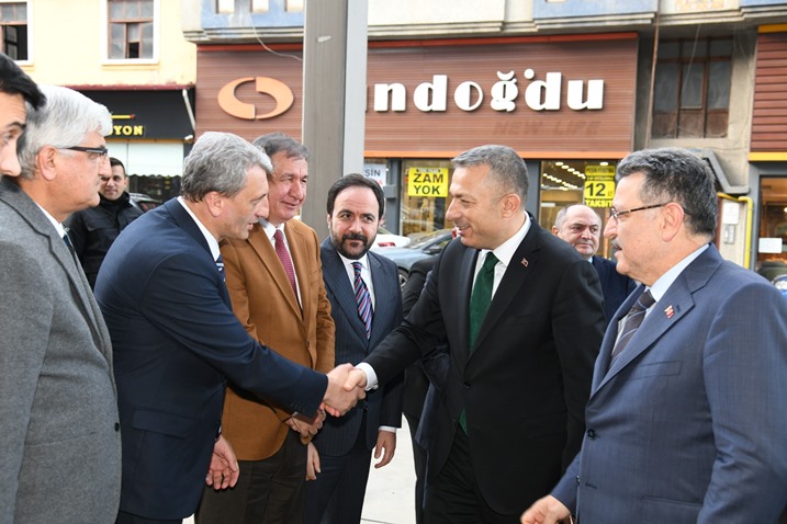 Trabzon Valisi Tahir Şahin, Büyükşehir Belediyesi’ni ziyaret ederek Başkan Ahmet Metin Genç ile bir araya geldi. Belediye binasına girişinde Başkan Genç ve belediye yetkilileri tarafından karşılanan Vali Şahin, şeref defterini imzaladı. Vali Şahin ve Başkan Genç, şehirde yürütülen çalışmalar, devam eden projeler ve Trabzon’un gelişimine yönelik planlanan yatırımlar hakkında görüş alışverişinde bulundu. Şehrin ihtiyaçları ve kamu kurumları arasındaki iş birliğinin önemi vurgulanırken, Trabzon için uyum ve koordinasyon içinde çalışmanın gerekliliğine dikkat çekildi.
