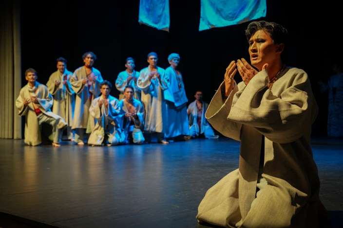 Trabzon Büyükşehir Belediyesi’nin ev sahipliğinde düzenlenen 5. Uluslararası Tiyatro Festivali büyük ilgiyle devam ediyor. Şehrin kültür-sanat hayatına önemli katkı sağlayan festival kapsamında, birbirinden değerli yerli ve yabancı tiyatro ekipleri sahne almaya devam ediyor. Hamamizade İhsan Bey Kültür Merkezi’nde sahnelenen tiyatro gösterimleri, sanatseverlerden tam not alıyor. Dün akşam Kazakistan’dan festivale katılan “Turkestan Musical Theater” ekibi, “Sheikh Sanan” adlı oyunuyla izleyici karşısına çıktı. Etkileyici sahne performansı ve güçlü anlatımıyla dikkat çeken oyun, tiyatroseverlerin yoğun ilgisiyle karşılandı.
