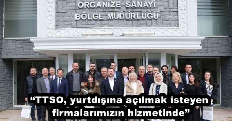 TTSO Başkanı Erkut Çelebi, oda üyesi firmaların yurt dışına açılması ve ticaretlerini geliştirmeleri için TTSO bünyesinde bulunan uzmanların her zaman desteğe hazır olduğunu ifade ederek, “Firmalarımıza eğitim sürecinden yurt dışı ikili iş görüşmesi süreçlerine kadar başta kümelenme projeleri olmak üzere birçok projeyle destek olmaya çalışıyoruz” dedi.