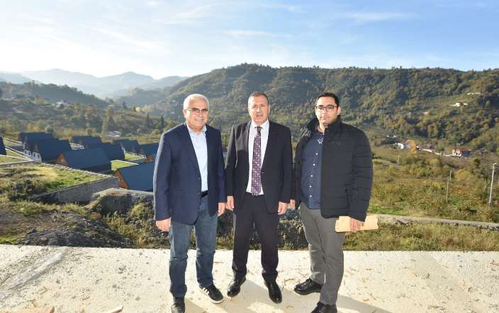 TTSO Başkanı Erkut Çelebi Yomra ilçesi Çınarlı Mahallesinde inşaatı süren, içinde otel ve bungalov tarzı konaklama üniteleri bulunan, havuz ve aquapark yapımı planlanan tatil köyü alanında incelemelerde bulundu.