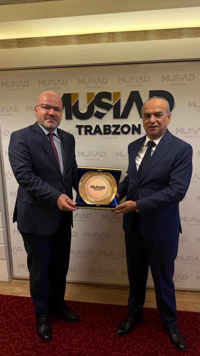 Ziyaretin ilk durağı, bölgenin önde gelen iş dünyası temsilcilerini bir araya getiren Müstakil Sanayici ve İş Adamları Derneği MÜSİAD Trabzon Şubesi oldu.