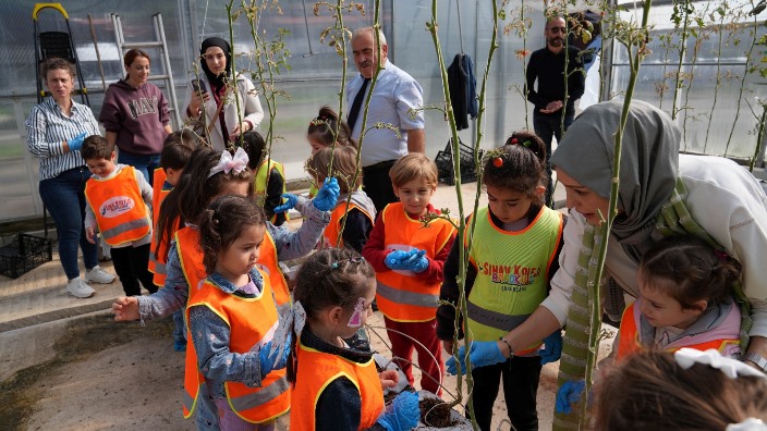Anaokulu öğrencileri, seralarda yapılan domates sökme etkinliğine katılarak toprak ve tarımla uğraşmanın mutluluğunu yaşadılar. Eğitmenler eşliğinde yapılan bu etkinlik, çocukların hem motor becerilerinin gelişmesi hem de doğal yaşamla bağ kurmaları açısından unutulmaz bir deneyim oldu.