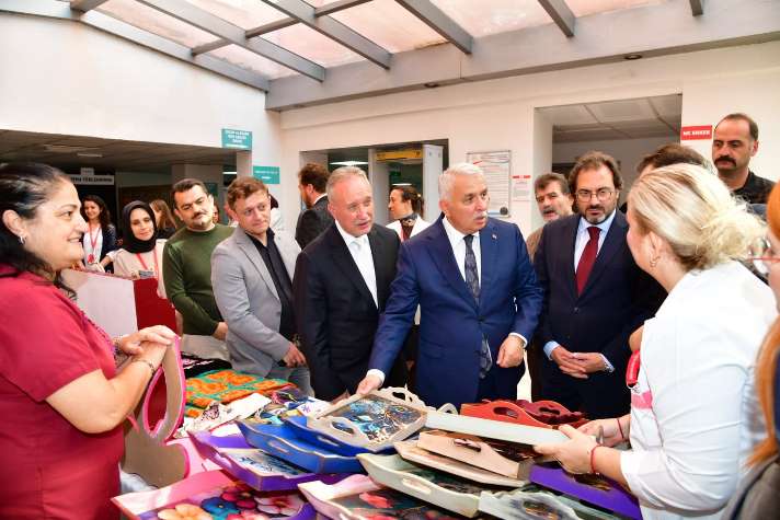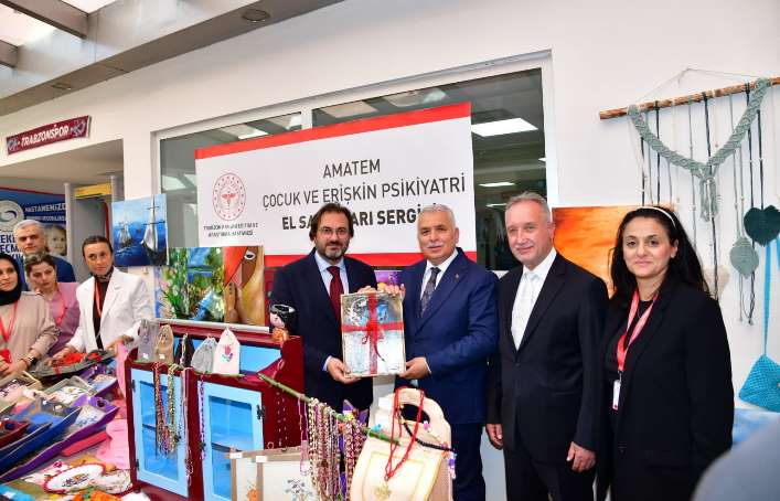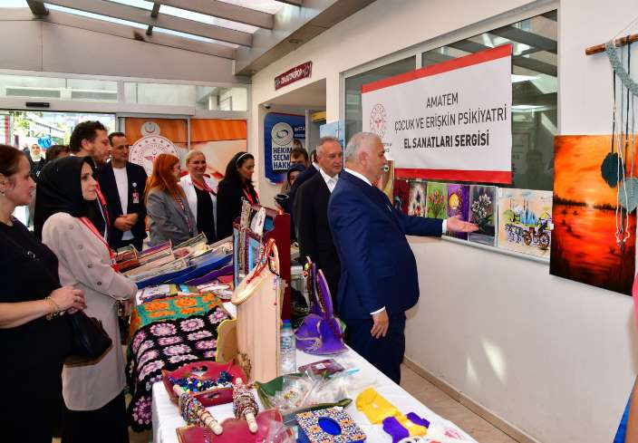 Tedavi gören bireylerin el emeğiyle hazırladığı tablolar, seramikler ve süs eşyalarının yer aldığı sergide, sanatın tedavi sürecindeki olumlu etkilerine dikkat çekildi.