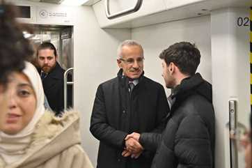 Bakan Uraloğlu ile birlikte metroda seyahat eden yolcular, trafik yoğunluğu nedeniyle uçağa yetişme telaşını ortadan kaldıran “Gayrettepe-Kağıthane Metro” hattının açılmasından duydukları memnuniyeti dile getirdiler.