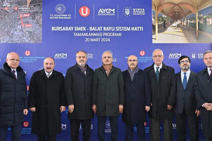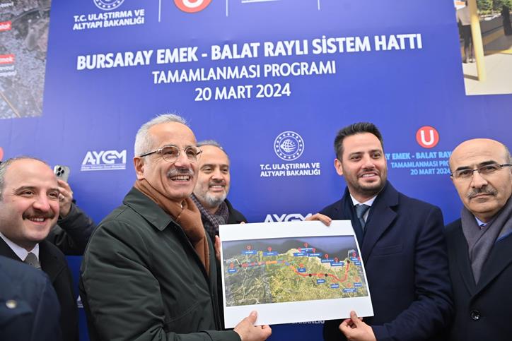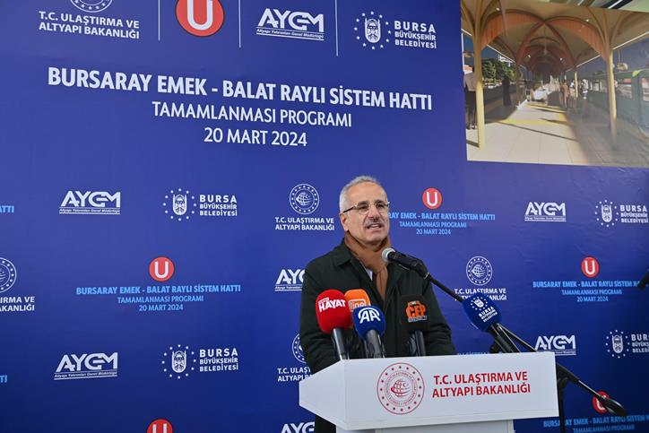 Ulaştırma ve Altyapı Bakanı Abdulkadir Uraloğlu, BURSARAY Emek-Balat Raylı Sistem Hattı Tamamlanma Töreni’ne katıldı. 2002 yılından bu yana Cumhurbaşkanı Recep Tayyip Erdoğan'ın liderliğinde şehirleri hızlı trenlerle birbirine bağladıklarını belirten Uraloğlu, şehir içi ulaşımında da kent içi raylı sistem projelerini birbiri ardına hayata geçirdiklerini söyledi.