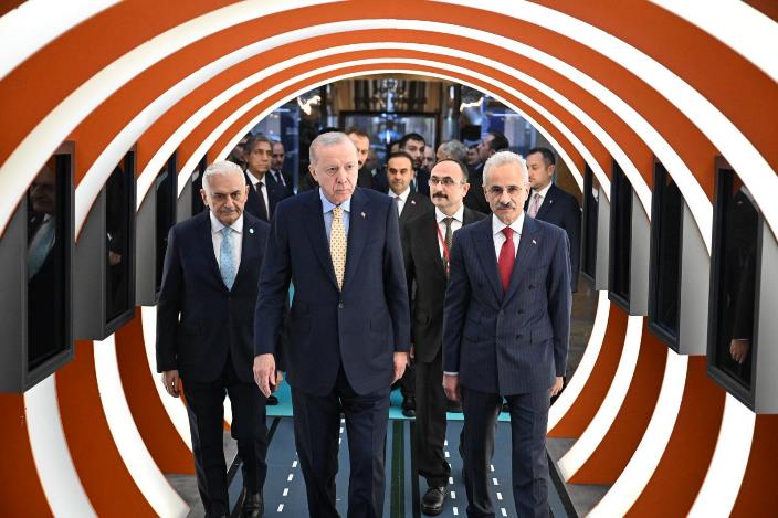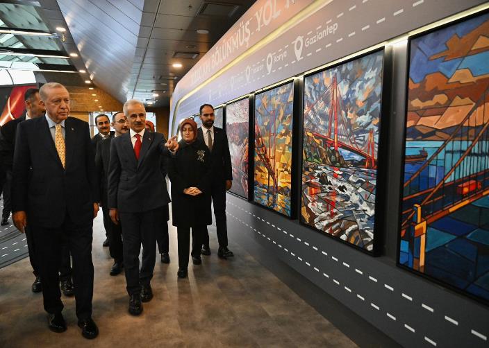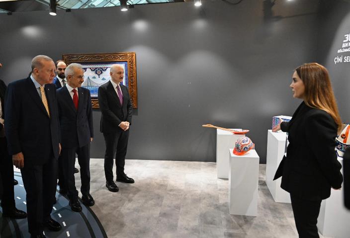 Cumhurbaşkanı Erdoğan ve Bakan Uraloğlu, sergide yer alan bölümleri gezerek eserleri tek tek inceledi.