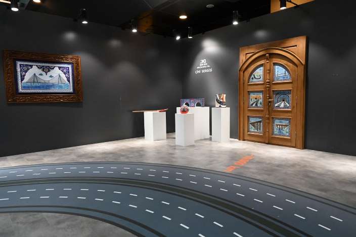Sergi alanında; mozaik, fotoğraf, resim ve dokuma çalışmalarının yanı sıra, geçmiş açılış törenlerinde kullanılan makaslardan oluşan özel bir bölüm yer aldı. Karayolları projelerinin ulusal ve uluslararası alanda aldığı ödüller de sergide ayrı bir bölümde sergilendi.