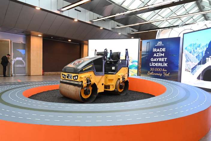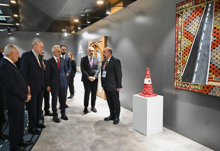 Cumhurbaşkanı Recep Tayyip Erdoğan ile Ulaştırma ve Altyapı Bakanı Abdulkadir Uraloğlu, 30 Bin Kilometre Bölünmüş Yol eşiğinin aşılması dolayısıyla düzenlenen tören öncesinde Karayolları Gayret ve Liderlik Sergisi’ni ziyaret etti.