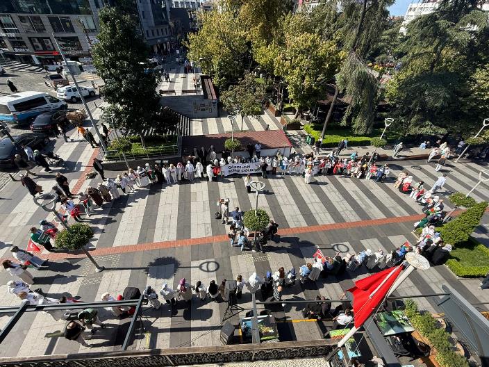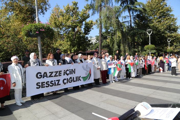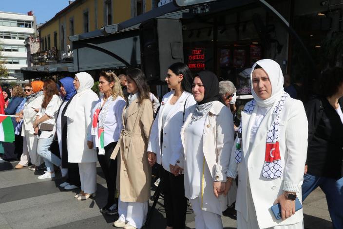 Bugün kadınlar olarak Gazze’nin sessiz çığlığına ses olmak için el ele verdiğimizi tüm dünyaya göstermek adına meydanlardayız.