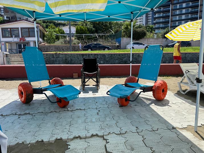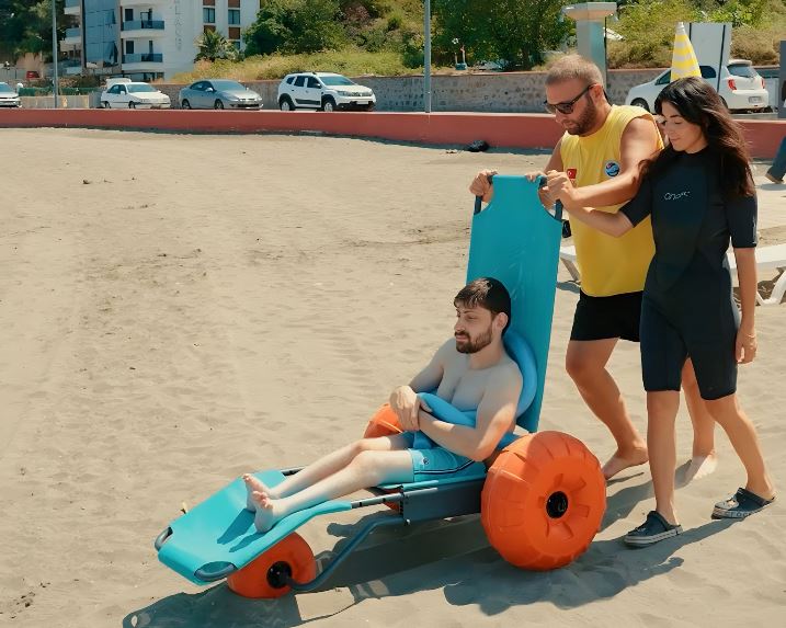 Trabzon Büyükşehir Belediyesi, özel gereksinimli bireylerin sosyal yaşamın her alanında yer alabilmeleri ve hayatlarının kolaylaştırılması amacıyla önemli çalışmalara imza atıyor. Bu kapsamda, Ortahisar ilçesi Yalıncak Mahallesi’nde bulunan Yalıncak Plajı’nda özel gereksinimli bireylerin güvenle denizin keyfini çıkarabilmeleri için özel bir alan hizmete sunuldu. Refakatçi eşliğinde plaja gelen özel gereksinimli vatandaşlara yüzme sürecinde belediye görevlileri tarafından destek sağlanıyor. Böylece özel gereksinimli bireyler, yaz mevsiminin tadını doyasıya yaşama imkanı buluyor. Sabah 10.00 ile akşam 18.00 saatleri arasında hizmet veren Yalıncak Plajı’nda güvenlik personeli ve cankurtaranlar da sürekli görev başında bulunuyor.