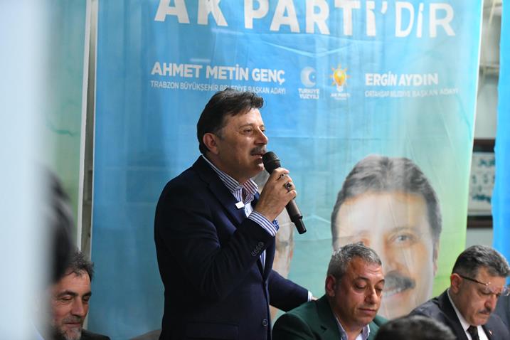 Toplantıda konuşan Trabzon Büyükşehir Belediye Başkan Adayı Ahmet Metin Genç, Akyazı’nın sorunlarına vakıf olduğunu ve seçilmeleri halinde doğal gazı Akyazı’ya kazandıracaklarını vurguladı. Mikrofonu eline alıp nutuk atan siyasetçilerden olmadığının altını çizen Genç, “Akyazı’mızda şu anda öne çıkan talep nedir dersek doğal gaz ilk sıradadır. Bunun bilincinde olarak konuşuyorum. İnşallah göreve gelir gelmez Akyazı’mıza doğal gazı kavuşturmak için büyük bir gayreti Ergin Aydın Başkanımızla ortaya koyacağız ve Akyazı Mahallemiz doğal gaza kavuşacak. Biz bu sözleri mikrofonda bırakmayacağız. Takip edeceğiz. İnşallah sizlerin destekleri ile de Trabzon’dan şampiyon çıkacağız. Cumhurbaşkanımıza bunun için söz verdim. Güçlü çıktığımız zaman Ankara’ya gidince istediğiniz bir ise iki alıp şehrimize döneceğiz.” dedi.