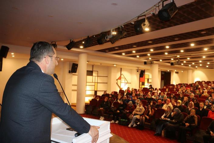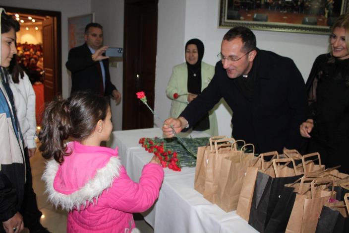 Tiyatro oyunu öncesinde hanımlarla bir süre sohbet eden Başkan Ekim, “Hayatımızın her anında, her konuda ve her zaman desteklerini gördüğümüz, Varlıklarıyla onurlandığımız, bizi eğiten, yetiştiren, Bizi biz yapma yolunda yüreklerindeki sevgi ve şefkati karşılıksız veren tüm kadınlarımızın 8 Mart Dünya Kadınlar gününü kutluyorum. Sizler toplumumuzun baş tacısınız. Kadın; bizim anamız, eşimiz, kardeşimiz. Her başarılı bir erkeğin arkasında ve yanında kadın olduğunu biliyoruz. Sizler bizim en kıymetlilerimizsiniz. Bizler de en kıymetlilerimiz olan sizler için şehrimizde sizleri memnun edecek işler yapmaya gayret ediyoruz. Ortamahallemizde şehrimize kazandırdığımız müzemiz sizler için ücretsizdi. Topluma yöne veren kadınlarımızın, daha çok üretmesi için, ekonomik özgürlük kazanmalarına destek olmak için Hanımlar Kültür Evimizde hanım kardeşlerimizin zanaat öğrenmesine katkıda bulunuyoruz. Mutlu kadınlar demek; mutlu bir toplum ve mutlu bir gelecek nesil demektir. Bu bilinç ve farkındalıkla gerek Spor Eğitim Merkezimizde gerekse Gençlik Merkezimizde hanım kardeşlerimiz için spor programları düzenliyoruz. Buralarda hem hanım kardeşlerimiz dilediklerince spor yapabiliyorlar hem de kız çocuklarımız birbirinden farklı spor branşlarını deneyimleme ve dilerse istediği alanda uzmanlaşma imkanı buluyor.
