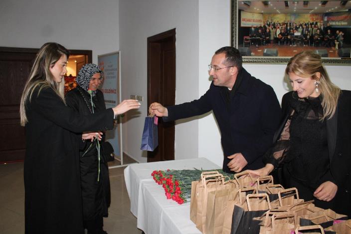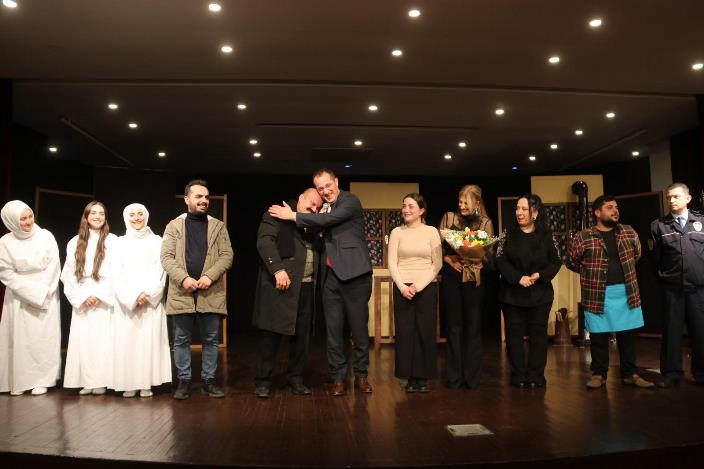 Gündüz ilçe genelindeki kadınları ziyaret eden Belediye Başkanı Osman Nuri Ekim, akşam ise Kadınlara özel sahnelenen ‘Kader’ adlı tiyatro oyununa katıldı.