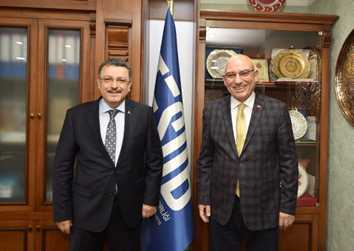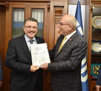 TESOB Başkanı Metin Kara ve yönetim kurulu üyeleriyle görüşen Başkan Genç, "Kendimi evimde gibi hissettiğim burada bulunmaktan mutluyum. 30 bin esnafımızın temsilcisi olan kurumumuzla işbirliği içinde çalışmalarımız oldu. Elimizden geldiğince esnafımıza destek olmaya çalıştık. Belediye başkanı olarak da esnafımızın sorunlarına, taleplerine kayıtsız kalmamız söz konusu değildir. Pandemi döneminde yaptığınız çalışmaları yakından biliyorum. Bir kez daha teşekkür ederim. İnşallah bundan sonra da işbirliği içinde çalışmalarımızı sürdüreceğiz" ifadesini kullandı. TESOB Başkanı Metin Kara, başta TESOB Hizmet Binası olmak üzere taleplerin olduğu dosyayı Başkan Genç'e verirken, çalışmalarında başarı dileklerini iletti.