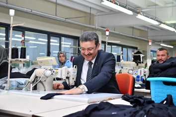 Carmen Tekstil’i ziyaretinde dikiş makinesinin başına oturan Başkan Adayı Genç, “Zor ama bir o kadar zevkli bir iş, Allah size kolaylık versin…” diyerek işçilerle sohbet etti.