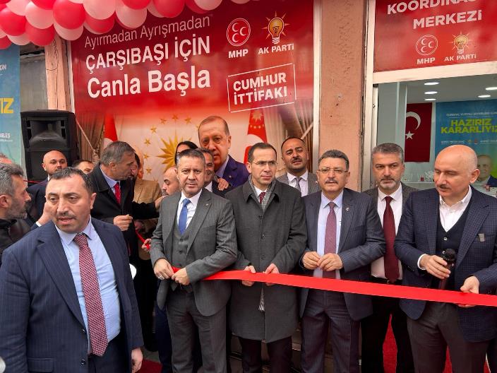 MHP 31 Mart yerel seçimlerinde Çarşıbaşı Belediyesini yeniden kazanmak için varını yoğunu ortaya koyuyor. AK Parti MHP Cumur ittifakı Çarşıbaşı seçim ofisinin açılışına AK Parti Trabzon Milletvekili eski bakan Adil Karaismailoğlu eski Trabzon vekili Salih Cora AK Parti Trabzon İl Başkanı Dr.Sezgin Mumcu MHP Trabzon İl Başkanı Ömer Ayar Çarşıbaşı Belediye Başkan Mümin Nuhoğlu Çarşıbaşı Belediye Başkan adayı Ahmet Keleş AK Parti ve MHP Çarşıbaşı ilçe başkanları ve yönetimleri ile birlikte çok sayıda vatandaş katılım gösterdi