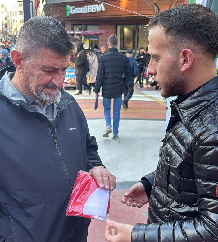 Kahramanmaraş Caddesi’nde kurulan stantta CHP Gençlik Kolları üyeleri tarafından vatandaşlara Türk bayrağı dağıtıldı. Etkinlik kapsamında ayrıca şeker ikramında bulunularak, Türk bayrağına sahip çıkmanın taşıdığı tarihî ve toplumsal sorumluluğa dikkat çekildi.