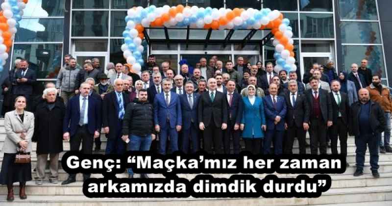 Tezahüratlar eşliğinde kürsüye çıkan Başkan Genç, “Doğup, büyüdüğüm topraklarda olmak, çocukluğumu, gençliğimi yaşadığım topraklarda olmak ama şu anda bu topraklara yeni bir hizmet makamının adayı olarak Maçka’mızda bulunmanın mutluluğu ve gururuyla buradaki hazirunu selâmlıyorum.” dedi.
