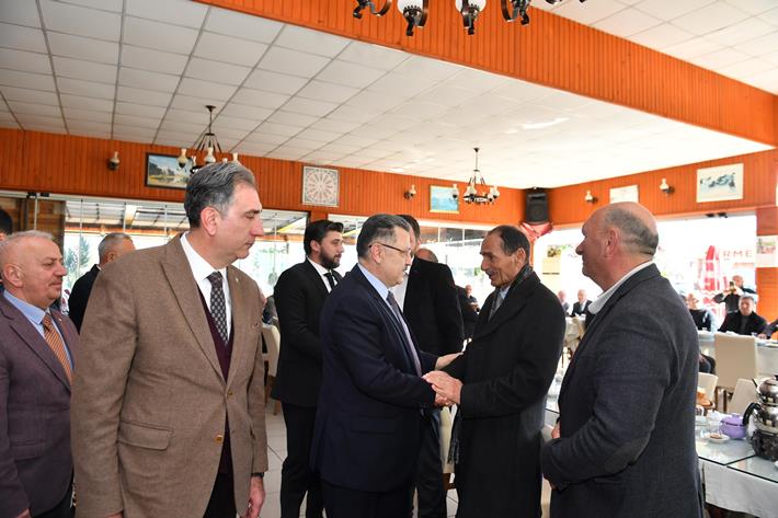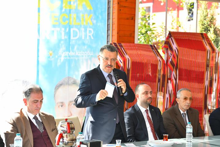 Muhtarlara ve partililere hitap eden Başkan Genç, güzel hizmetler yapanların her zaman güzel bir şekilde anıldığını, amacının bu şehirde güzel bir şekilde anılmak olduğunu dile getirerek, “Biz göreve geldiğimiz andan itibaren hep muhtarlarımızı mesai arkadaşı olarak tanımladık. Hep şunu söyledik. Hizmet etmeyi de ancak Allah nasip ederse yapabilirsiniz. Allah nasip etti, bu hizmetlerin banisi olan Cumhurbaşkanımızın partisinde kuruluşundan itibaren görev aldık. Allah güzel hizmetler yapmayı yeni dönemde de bizlere nasip eylesin inşallah. Çünkü hizmet ederseniz, kalıcı bir eser bırakırsanız yarın göçtüğünüz zaman anılıyorsunuz. Yakın zamanda Sürmene’nin evladı Niyazi Sürmen abimizi uğurladık. Sürmene’nin evladıydı ama Trabzon’da tebarüz etmiş ve kuruluşta ciddi emek vermiş bir abimizdi. Trabzon’da da belediye başkanı olarak vazife yapmıştı. Şimdi onu güzel sözlerle anıyoruz. Kalıcı olan bu oluyor. Hüseyin Türker, İbrahim Sedef de çok güzel hizmetler yaptı. Hepsini rahmetle anıyoruz. Cemalettin Aksoy Başkanımıza da geçmiş olsun ve şifa dileklerimizi iletiyoruz. Fikri Usta, Rahmi Üstün Başkanlarımız da güzel hizmetler yaptı, hepsine müteşekkiriz.” cümlelerini kullandı.