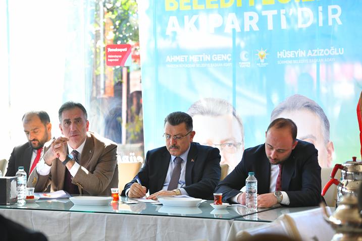 AK Parti Trabzon Büyükşehir Belediye Başkan Adayı ve Ortahisar Belediye Başkanı Ahmet Metin Genç, 31 Mart Yerel Seçim çalışmaları kapsamında Sürmene’de esnaf, vatandaşlar, muhtarlar ve AK Parti belediye meclis üyeleriyle bir araya geldi.