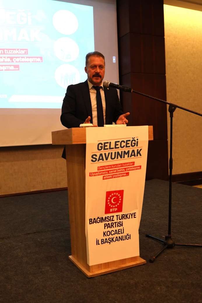 Programın açılış konuşmasını yapan BTP Kocaeli İl Başkanı Muharrem Can, "Türkiye çok zor bir dönemden geçiyor. Gençliğimiz bir şekilde savrulup gidiyor. Çocuklarımıza evde dahi hükmedemiyoruz. Yani yan odada telefon oyundan alıp bu tarafa getiremediğimiz bir nesille başa kaldık" dedi.