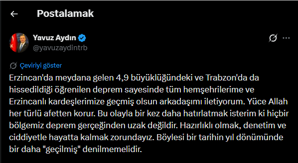 Bu vesileyle bir kez daha hatırlatmak isterim ki hiçbir bölgemiz deprem gerçeğinden uzak değildir.