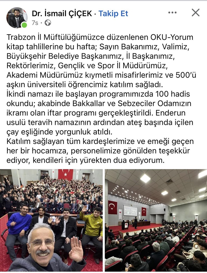 Toplumun tamamına hizmet etmesi gereken Trabzon İl Müftülüğü makamının siyasi tartışmaların ve taraflı dilin dışında kalması, kurumun itibarı ve toplumsal birlik açısından bir zorunluluktur.