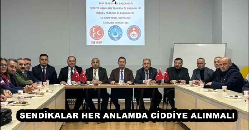 MHP Trabzon İl Başkanı Ayar, yerel yönetimlerin şehirlerinde görev yapan sendika ve sivil toplum kuruluşlarını mutlak suretle ciddiye alması ve onlardan faydalanması gerektiğini dile getirdi.