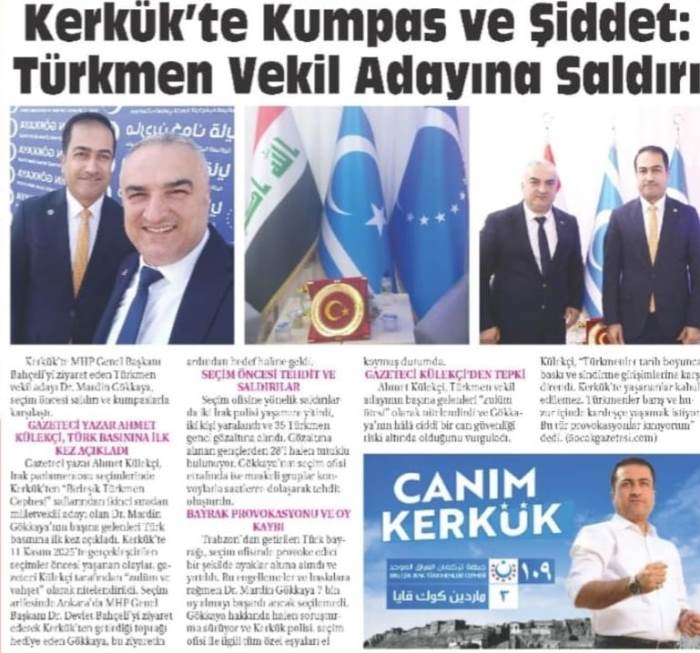 Irak Parlamentosu seçimlerinde Kerkük'ten Türkmen Vekil adayı olan Dr.Mardin Gökkaya'nın isyanı dinmiyor.45 gün önce gerçekleşen seçimlere girmemesi yönünde her tehdit ve baskıya maruz kalan seçim ofisi ateşe kundaklanan Türkmen Cephesinin Kerkük'teki Vekil adayı Dr.Mardin Gökkaya seçimlerinden bu yana geçen süreçte zulmün devam ettiğini belirterek şu ifadeleri kullandı;