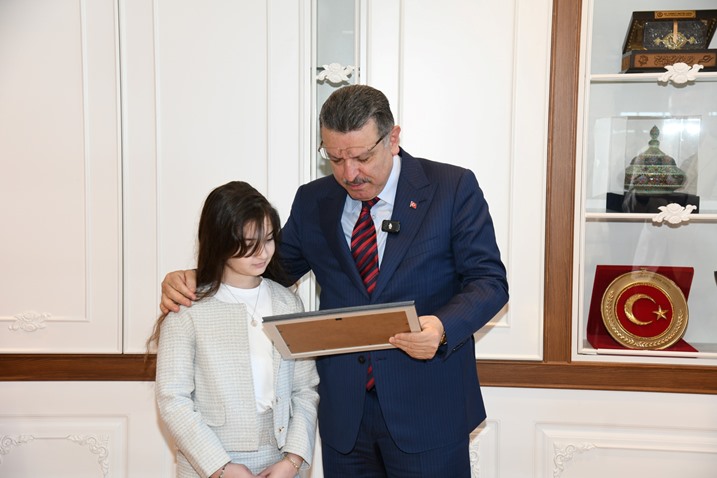 Trabzon Büyükşehir Belediye Başkanı Ahmet Metin Genç, STEM Matematik Olimpiyatları’nda dünya birincisi olan 10 yaşındaki 4’üncü sınıf öğrencisi Lina Saka ve ailesini makamında ağırladı. 153 ülkenin katıldığı olimpiyatların matematik kategorisinde 100 tam puan alarak dünya birinciliği elde eden Lina Saka, İtalya’da düzenlenecek final etabında Türkiye’yi temsil etmeye hak kazandı. Başkan Genç, ziyarette Lina Saka’yı tebrik ederek kendisine takdir belgesi takdim etti. Takdir belgesinde şu ifadeler yer aldı: “Bilime olan ilgin ve göstermiş olduğun üstün başarı hepimizin göğsünü kabarttı. Bilimi her zaman ön planda tutan köklü bir medeniyetin evlatları olarak senin gibi azimli ve çalışkan gençlerimizin gayretiyle ülkemizin dünya devletleri arasındaki güçlü konumunu sürdüreceğine yürekten inanıyorum. Matematiğin evrensel dilinde Trabzon'umuzun adını zirveye yazdırdığın için teşekkürler Lina. Seni tebrik ediyor, başarılarının devamını diliyorum.”