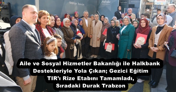 Aile ve Sosyal Hizmetler Bakanlığı ile Halkbank iş birliğinde hayata geçirilen “Kendi İşim Benim İzim” Gezici Eğitim TIR Programı; Karadeniz hattındaki ilk durağı Rize etabını yoğun katılımla tamamladı. Rize Valisi İhsan Selim Baydaş’ın da katılımıyla; çok sayıda kadın girişimci ve girişimci adayı tarafından ilgiyle karşılanan Gezici Eğitim TIR’ı; girişimcilik temelleri, dijitalleşme ve e-ticaret, kişisel marka oluşturma, finansal ve hukuki süreçler, şirket kurma adımları, ekip yönetimi ve mikrokredi olanakları gibi başlıklarda eğitimler sundu. İki oturum halinde gerçekleştirilen etkinlikte ilham veren kısa film gösteriminin ardından “Uzmana Sor” bölümüyle katılımcılara bire bir danışmanlık imkânı sağlandı.
