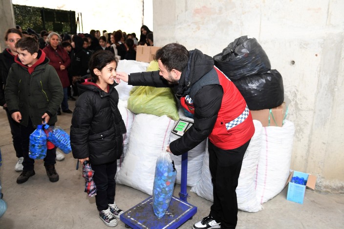 Bu kapsamda, topladıkları geri dönüşüm materyallerini 1.Sınıf Atık Getirme Merkezi’ne teslim eden Osman Altıntaş Ortaokulu öğrencilerine, iklim değişikliğiyle mücadele ve daha temiz bir dünya için neler yapılması gerektiği anlatıldı.