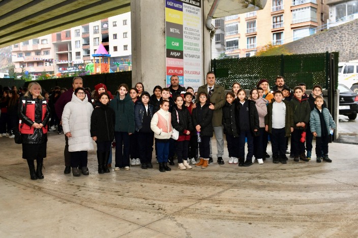 İklim Değişikliği ve Sıfır Atık Müdürlüğü ekipleri, Akyazı Mahallesi’nde Kanuni Bulvarı Akyazı Viyadüğü altında bulunan Atık Getirme Merkezi’ni ziyaret eden Osman Altıntaş Ortaokulu’ndan 150 öğrenciye, geri dönüşüm süreçleri hakkında bilgilendirme yaptı. Öğrencilerin gerçekleştirdiği ziyarete, Ortahisar Belediye Başkan Yardımcısı Özer İskender, İklim Değişikliği ve Sıfır Atık Müdürü Ezgi Kazan, müdürlükte görev yapan çevre mühendisleri ve öğretmenler eşlik etti.