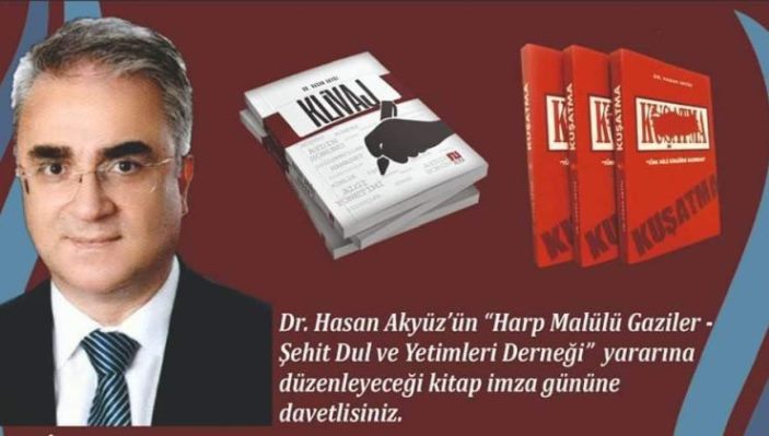 Daha önce Türkiye Harp Malulü Gaziler Şehit Dul ve Yetimleri Derneği Trabzon Şubesi yararına yazdığı kitabın imza günü gelirlerini bağışlayan Akyüz,