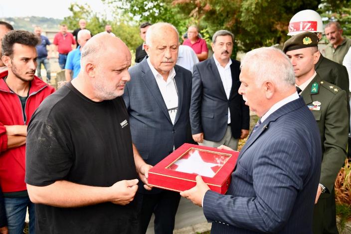 Trabzon Büyükşehir Belediye Başkan Vekili Ahmet Yüksel Gülay, 71 yaşında vefat eden Kıbrıs Gazisi Halit Dilber için Arsin İlçesi Gölcük-Konak Mahallesi Camii’nde düzenlenen cenaze törenine katıldı. Cenaze merasimine Başkan Vekili Gülay’ın yanı sıra Trabzon Valisi Aziz Yıldırım, İl Jandarma Komutanı Tuğgeneral Bahittin Murat Yakın, İl Emniyet Müdürü Murat Esertürk, Türkiye Harp Malulü Gaziler Şehit Dul ve Yetimleri Derneği Trabzon Şubesi Başkanı Ahmet Tezcan, askeri erkan, kamu kurum ve kuruluş temsilcileri ile çok sayıda vatandaş katıldı. Kılınan cenaze namazının ardından Halit Dilber’in naaşı, dualar eşliğinde toprağa verildi. Başkan Vekili Ahmet Yüksel Gülay, tören sonrasında Dilber ailesine ve yakınlarına başsağlığı dileyerek, “Vatanımız için büyük fedakârlıklar göstermiş olan kıymetli gazimizi ebediyete uğurlamanın üzüntüsünü yaşıyoruz. Merhum Halit Dilber’e Allah’tan rahmet, ailesine ve sevenlerine sabırlar diliyorum” dedi.