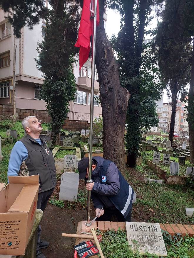 Türkiye Harp Malulü Gaziler, Şehit Dul ve Yetimleri Derneği Trabzon Şubesi, vatan uğruna mücadele eden kahramanlarımızın aziz hatırasını yaşatmak amacıyla anlamlı bir çalışmaya daha imza attı. Trabzon’un Toklu Mezarlığı’nda medfun bulunan İstiklal Savaşı Gazisi Hüseyin Avni Aker’in kabri başına bayrak direği dikilerek şanlı Türk Bayrağı göndere çekildi.