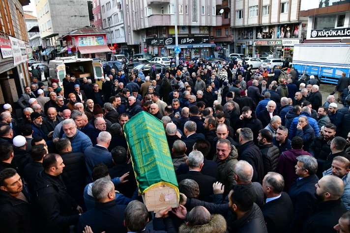 Ayşe Yavuz için Sürmene Merkez Eski Camii’nde kılınan cenaze namazına katıldı.